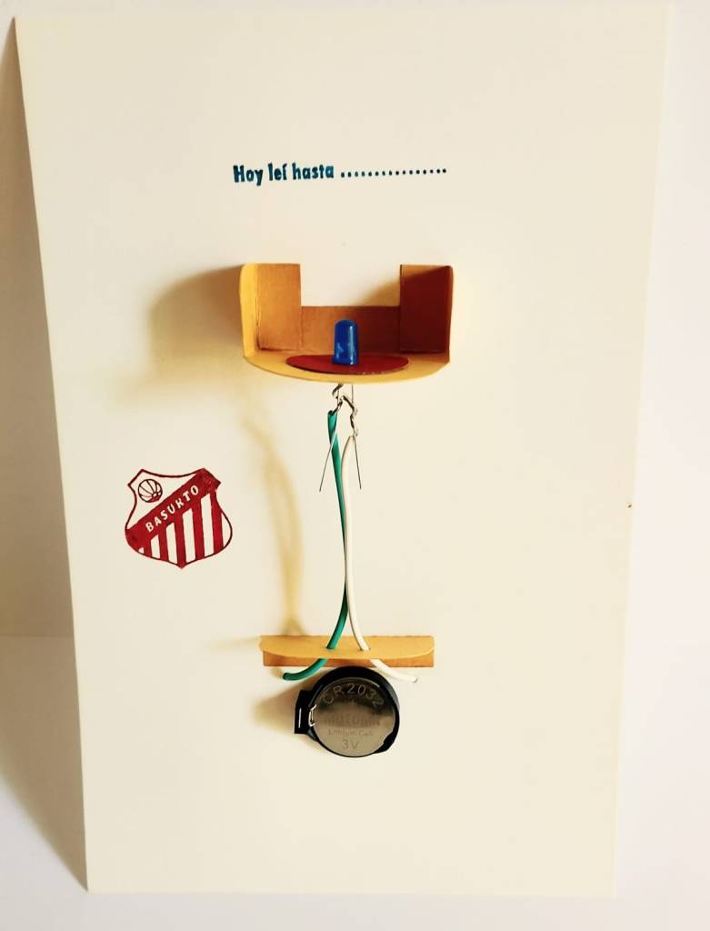 Cartón, cable, led, pila, tinta. 19.5 x 13 x 4 cm.