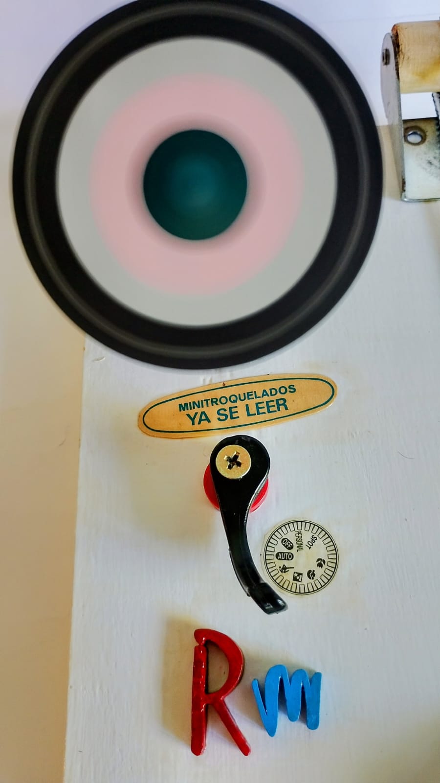 Madera, plástico, metal, cartón, papel, cuerda, motor, interruptor, pilas, acrílico, barniz. 27 x 16 x 10 cm.