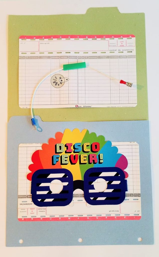Cartulina, cable, goma, metal, papel. 40 x 23.5 x 0.5 cm.